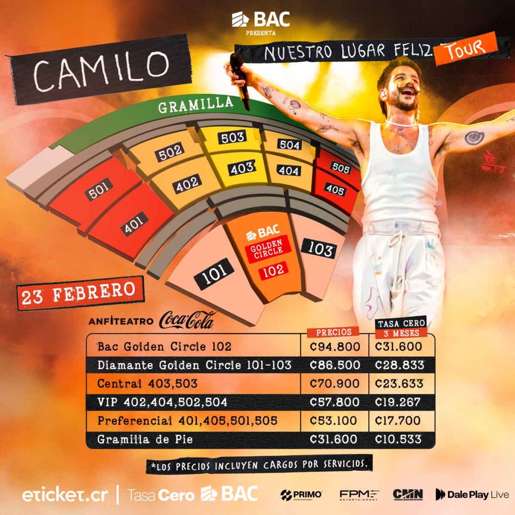 Las entradas pueden adquirirse por medio de la tiquetera eticket.cr – Para este show Credomatic ofrece el sistema Tasa 0 con minicuotas a 12 meses.