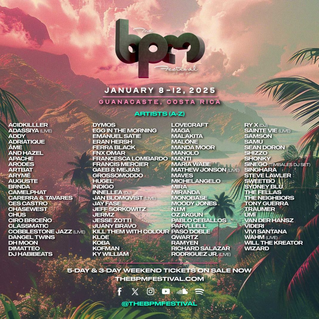 Tamarindo, Costa Rica– En un esfuerzo por mantener los más altos estándares de calidad y garantizar una experiencia inolvidable, anunciamos con entusiasmo importantes cambios para la próxima edición de The BPM Festival Costa Rica, que se llevará a cabo del 8 al 12 de enero de 2025.