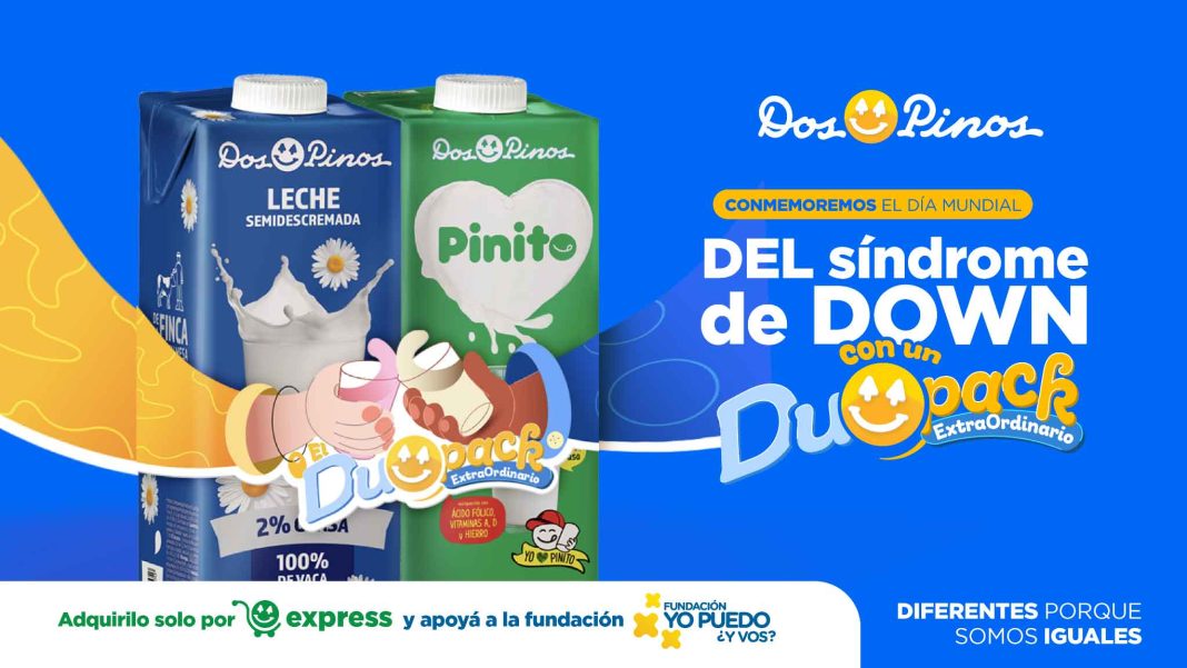 San José, 17 de marzo. En conmemoración del Día Mundial del síndrome de Down, Dos Pinos creó los Duopack Extraordinario, una iniciativa solidaria que promueve la igualdad y la inclusión. Esta edición especial ofrece combinaciones únicas de dos productos diferentes, con el propósito de celebrar la diversidad y apoyar a la Fundación Yo puedo ¿Y vos?.