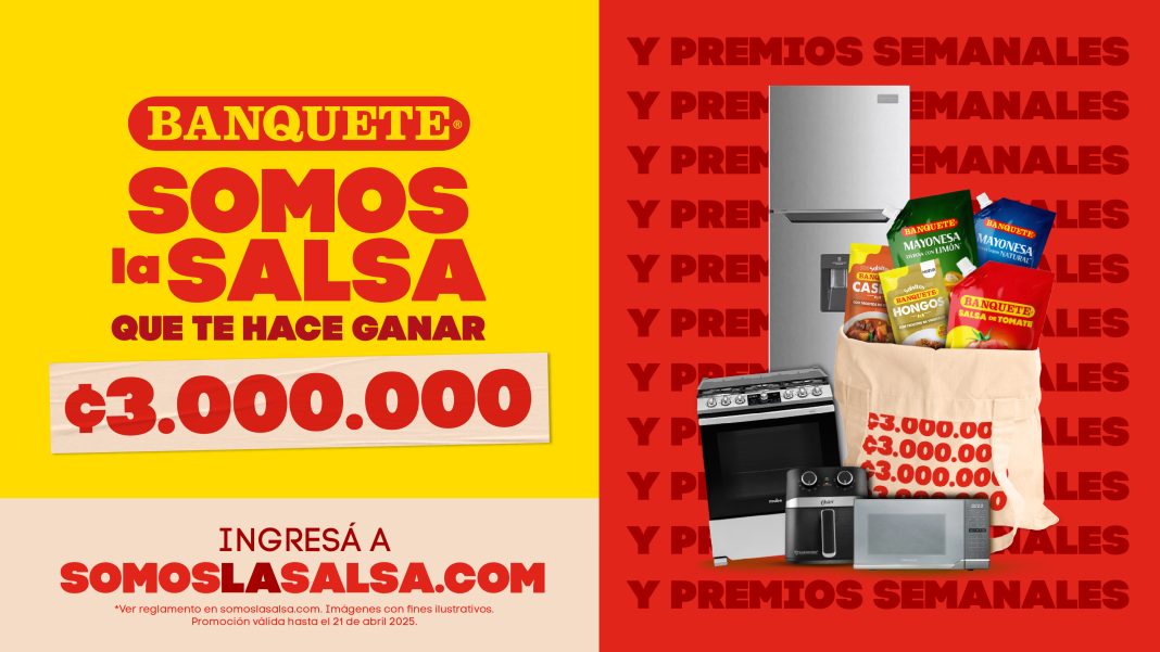 Banquete invita a todos los costarricenses a formar parte, disfrutando de sus productos en todos los puntos de venta. Consulte el reglamento de la promoción en https://somoslasalsa.com/wp-content/uploads/2025/03/Reglamento-SOMOS-LA-SALSA-QUE-TE-HACE-GANAR.pdf