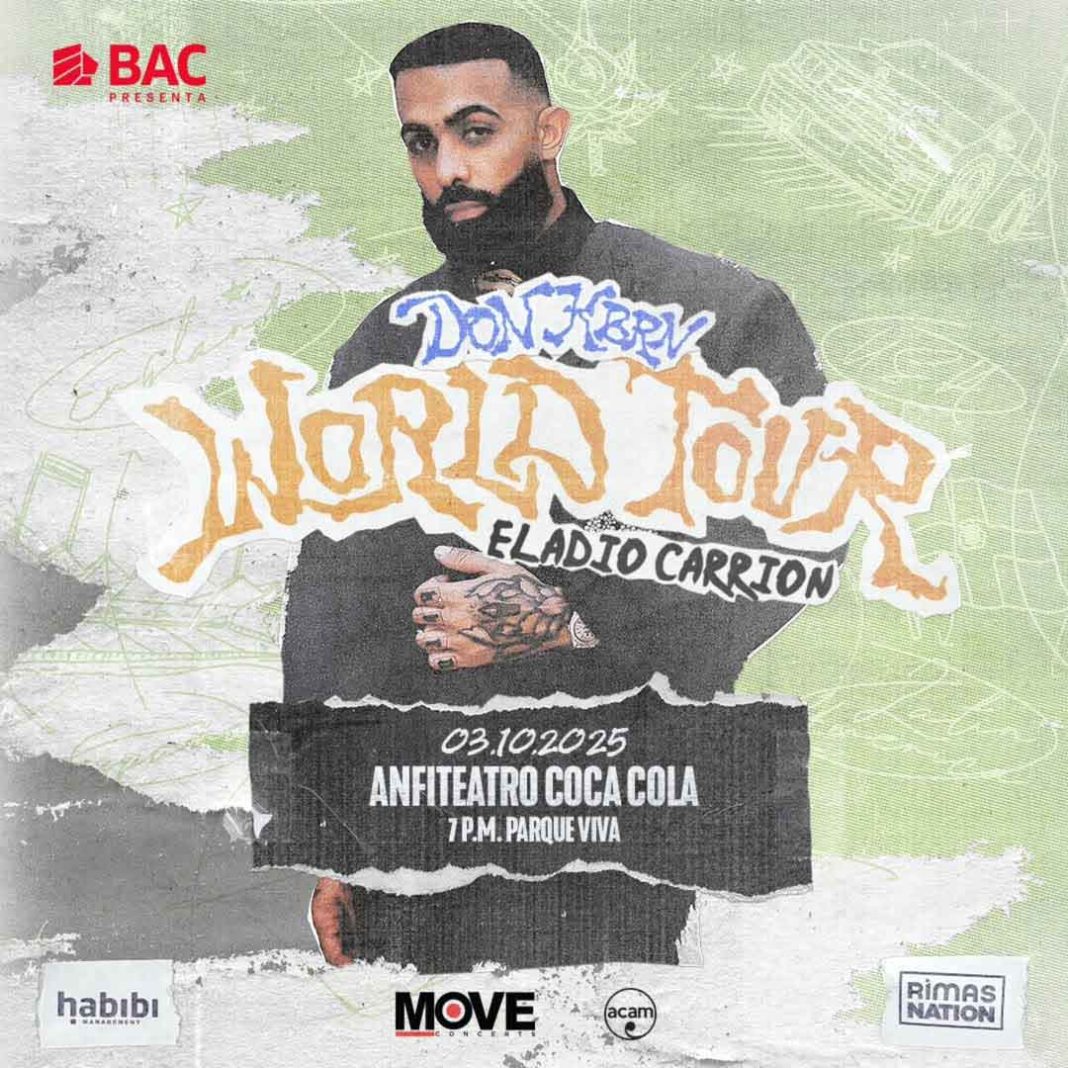 San José, abril 2025. ¡Atención, fanáticos del trap! El esperado «Don KBRN World Tour» del artista puertorriqueño Eladio Carrión llegará a Costa Rica el viernes 3 de octubre, con una única presentación en el Anfiteatro Coca-Cola, Parque Viva.