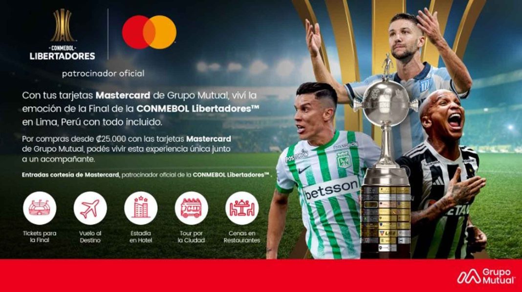 Alajuela, Agosto de 2025. Grupo Mutual premia la fidelidad de sus tarjetahabientes de tarjetas de crédito, quienes ahora podrán vivir una de las experiencias más impactantes del fútbol internacional: la gran final de la Conmebol Libertadores™ en Lima, Perú.
