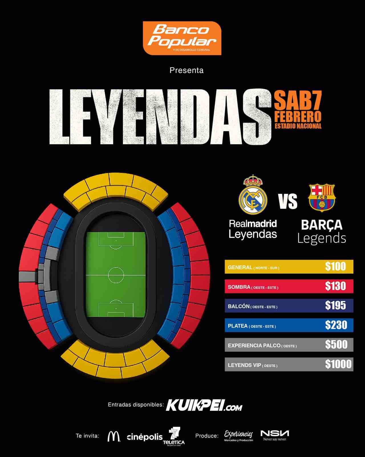 LEYENDAS se llevará a cabo el sábado 7 de febrero de 2026, en el Estadio Nacional a las 6:00p.m., donde ídolos que marcaron época con las camisetas de los dos clubes más grandes del mundo volverán a encontrarse en un partido de exhibición lleno de historia, emoción y espectáculo.