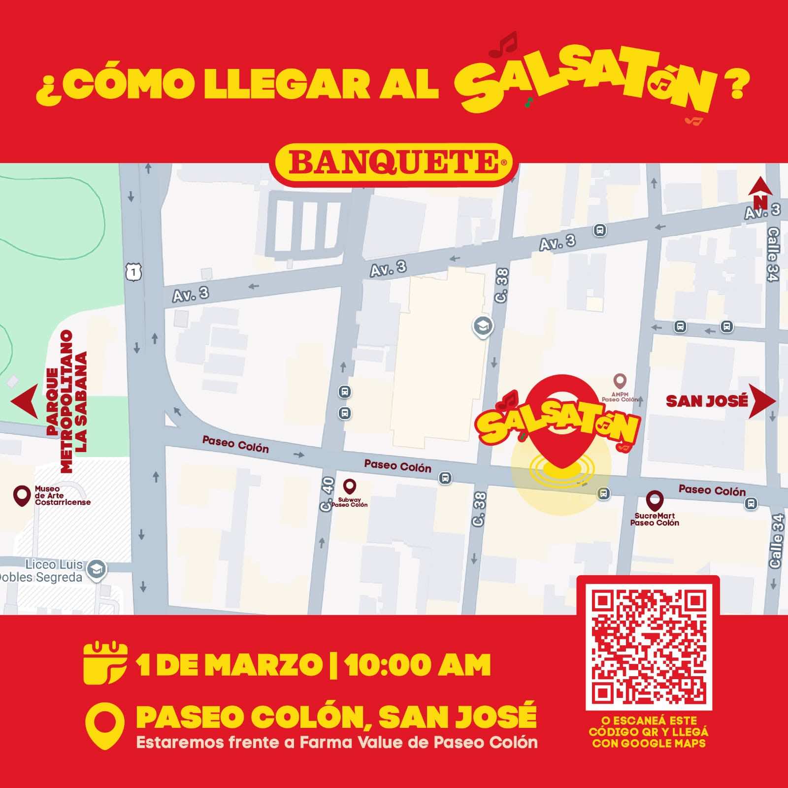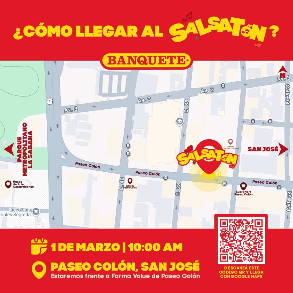 Como parte de esta celebración, la marca invita a las personas a sumarse a La Salsatón Banquete, este domingo 1° de marzo a las 10:00 a.m. en Paseo Colón, en el marco de los Domingos Familiares Sin Humo, organizados por la Municipalidad de San José. El evento será abierto al público y estará diseñado para que personas de todas las edades puedan reunirse, bailar y celebrar esta canción colectiva con todo el sabor de la salsa.