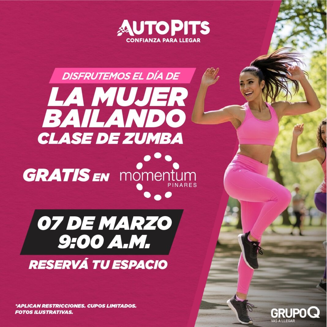 San José, marzo de 2026. Con el objetivo de impulsar la salud femenina y conmemorar el Día Internacional de la Mujer, Autopits y Momentum ofrecerán una clase gratuita de zumba, este sábado 7 de marzo, a las 9 am, en el centro comercial Momentum Pinares.