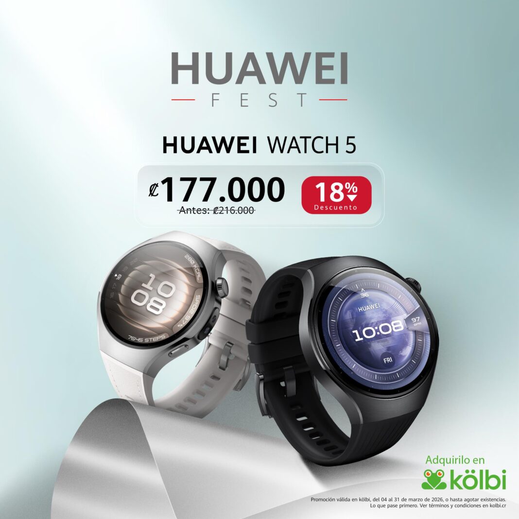 - HUAWEI WATCH 5 46mm (negro) y 42mm (blanco): de ₡216.000 a ₡177.000